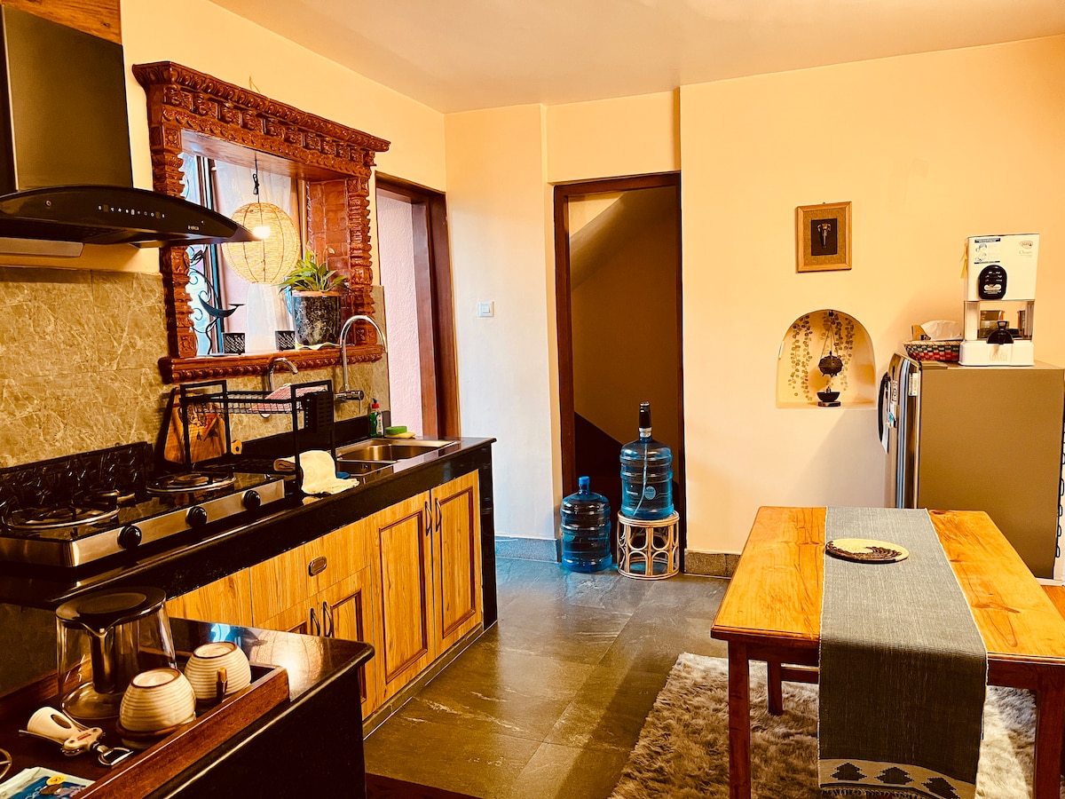 Üdvözlünk a Katmandu szívében található otthonos menedékhelyeden! Ez a tágas, 4 hálószobás lakás ötvözi a rusztikus karaktert a modern kényelemmel, gyönyörű keményfa padlóval és napfényes szobákkal. Családoknak vagy csoportoknak tökéletes, és mindent megtalálsz, amire szükséged lehet a kényelmes tartózkodáshoz. A békés Panipokhariban található szálláshelyről percek alatt elérheted Thamel izgalmait és Durbar Marg bevásárlási lehetőségeit. Minden részlet átgondoltan van elrendezve a tökéletes szálláshely érdekében, akár felfedezni szeretnél, akár egyszerűen csak lazítani.