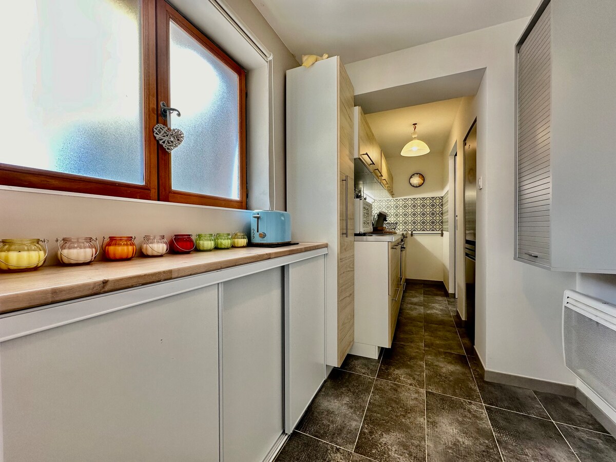 Bourgoin jallieu à proximité du centre ville appartement T2 entièrement rénové comprenant salon-séjour, dégagement avec rangements, cuisine indépendante toute équipée, 1 chambre avec placard et une salle d’eau avec WC. Le bien dispose d’une terrasse privative de 22m2 avec 1 place de parking. Environnement calme. Belle exposition. Proche des commodités (gare, commerces, cinéma, accès autoroute…). Equipements: store banne, barbecue, télé, bureau, machine à laver, lave vaisselle, frigo, cafetière…