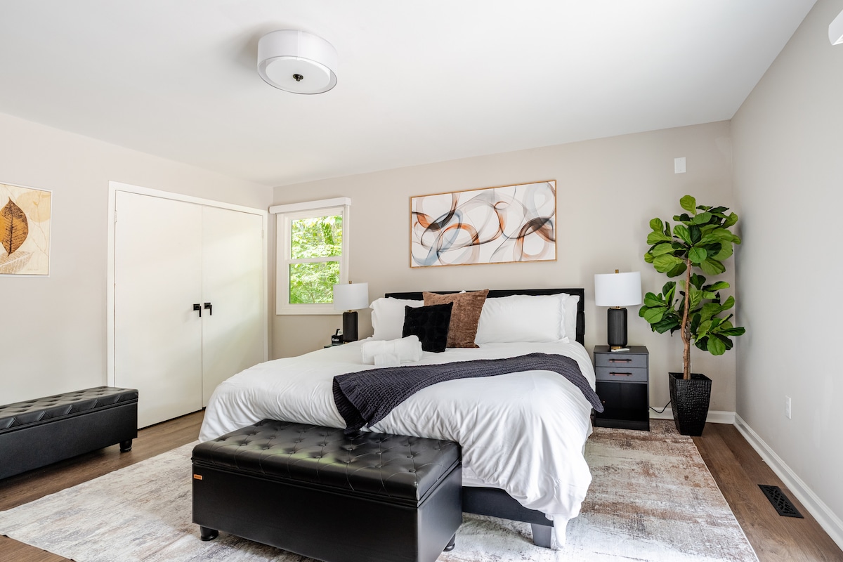 Gyönyörű, modern városi otthon egy tökéletes környéken! Állatbarát, teljesen felszerelt konyha, zárt hátsó terasz grillezővel, okostévé a nappaliban és hálószoba. A környék étterme és bárja két perc sétára található, te pedig csak 7 perc autóútra vagy az I77-től vagy az I485-től. Közel a tóhoz és számos parkhoz, de 20 perc alatt a külvárosban lehetsz.