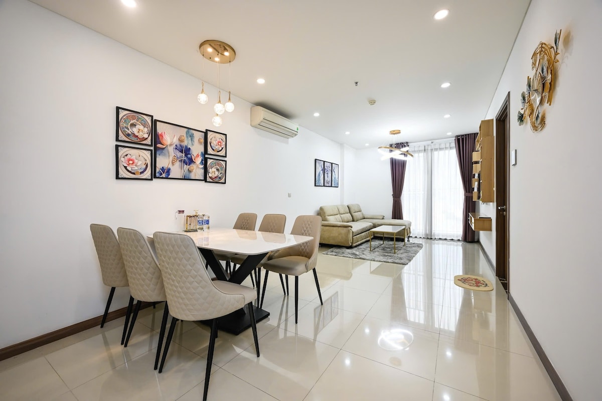 **AIRPORT PICKUP SERVICE AVAILABLE** Stay in our elegant 69m² suite at Serenity Sky Villas, District 3 — offering modern comfort at an affordable price. Welcome to a thoughtfully designed one-bedroom apartment where minimalist style meets cozy living. 🛌 Relax on a queen-size bed with premium linens and enjoy a space perfect for unwinding, recharging, or working remotely — all in a serene and stylish setting.