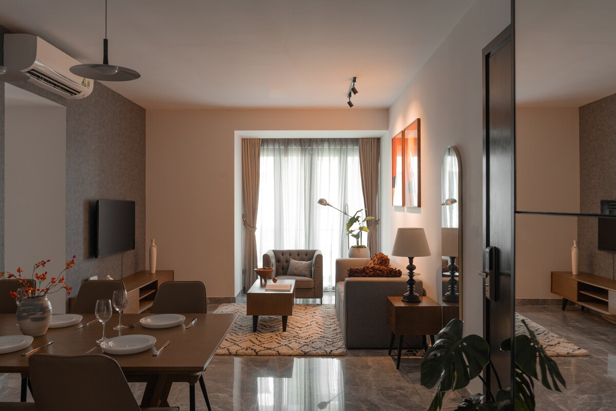 This 68m2 apartment is located on the 28th floor of a new, high-end building in District 1, with beautiful million-dollar views of the sunset, skyline and the entire city. Located in a prime location in District 1, only 200 meters from Bui Vien Walking Street, 300 meters from Ben Thanh Market and close to major shopping centers. This suite is designed like a home away from home, featuring a cozy space and 2 bedrooms (King size),all with windows,and 1 bathroom.