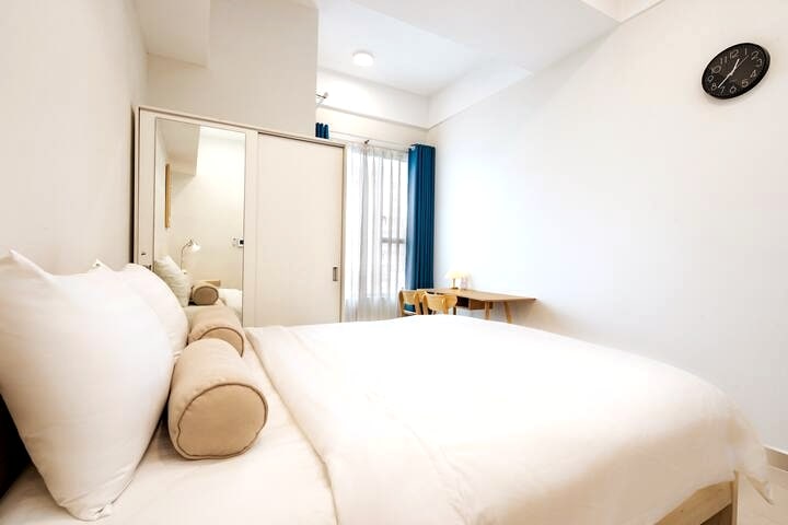 A rare find studio in Delasol - 55 inches TV - River View - Fully equipped kitchen Host do deep clean every check out We commit to wash bedding by OMO detergent, safe for skin. No bleach! We wash bathroom by soapy and hot water from the wall to the floor every check out, not just spray and wipe. Therefore, the clean will not be done faster than 2 hours.