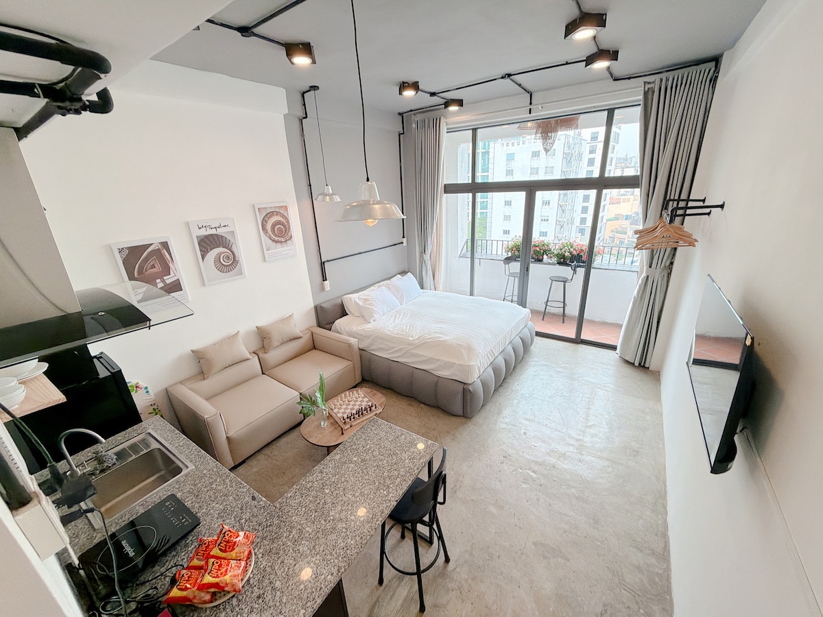 Tiszta és privát stúdió a La Vida Plus – Nguyen Van Linh, 7. kerületben, rövid és hosszú távú tartózkodásra is alkalmas. A lakásban kényelmes ágy, teljesen felszerelt konyha és Netflix-szel ellátott projektor található – ideális a hosszú nap után beltéren való pihenéshez. Bár a szobából gyönyörű kilátás nyílik a városra, a város nyüzsgését hallhatod, ami tovább növeli az élénk hangulatot. Egyszerű, hangulatos és kényelmes hely a néhány napra vagy több hónapra érkező vendégeknek.