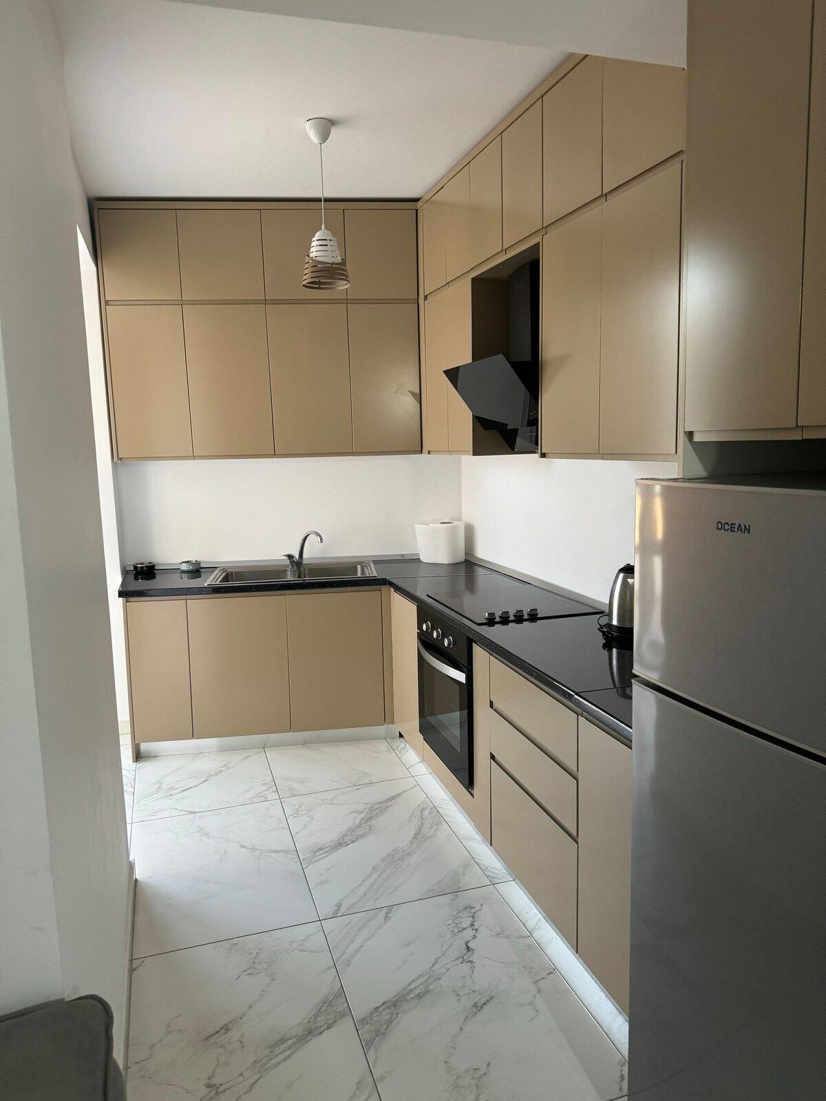 ☀️Az apartman 7,9 km-re található a Tia repülőtértől ✈️és 8,8 km-re Tirana központjától.🌇 Kamza Town központjában, a Tiranába vezető főút könnyen megtalálható. Az első emeleten számos létesítmény található, például bank, tőzsde , szupermarketek, kávé, gyógyszertár, buszpályaudvar stb. Könnyen látogatható helyek a Boville-tó, a Kruja-kastély és a Preza-kastély Tirana központja. A liftet a 3. emeletről veszik fel.(Az 1,2 emelet üzlethelyiség)