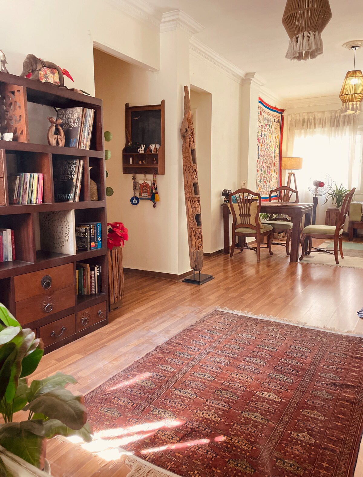 Tágas, 2 hálószobás Dokki Khan lakás – teljesen berendezett Ha fényűző, teljesen berendezett lakást keresel Dokki szívében? Ez a gyönyörűen berendezett, 2 hálószobás egység mindent kínál, amire szükséged lehet a kényelmes élethez. A modern kényelmi szolgáltatásokkal, a légkondicionált terekkel és az élénk, színes hangulattal a környék élénk hangulatát tükrözi. Kiváló elhelyezkedésének köszönhetően ideális szakembereknek, családoknak vagy bárkinek, aki a kényelem és az autentikus életstílus keverékére vágyik Kairóban.