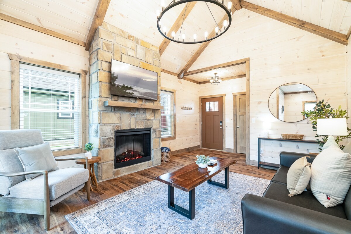 Üdvözöl a tökéletes belvárosi Pigeon Forge kiruccanás! Ez az 1 hálószobás/1 fürdőszobás víkendház ötvözi a rusztikus bájt a modern kényelemmel. Pihenj a privát pezsgőfürdőben, tedd magad kényelmesre a kőkandalló mellett, és élvezd a king-size hálószobát, a teljesen felszerelt konyhát, az okostévéket és a gyors Wi-Fi-t. Ez a 4 fős szálláshely mindössze néhány lépésre található a helyi látnivalóktól, a vásárlási lehetőségektől és az éttermektől, és mindössze 5 percre a Dollywoodtól. Festői, stílusos és sétálható!