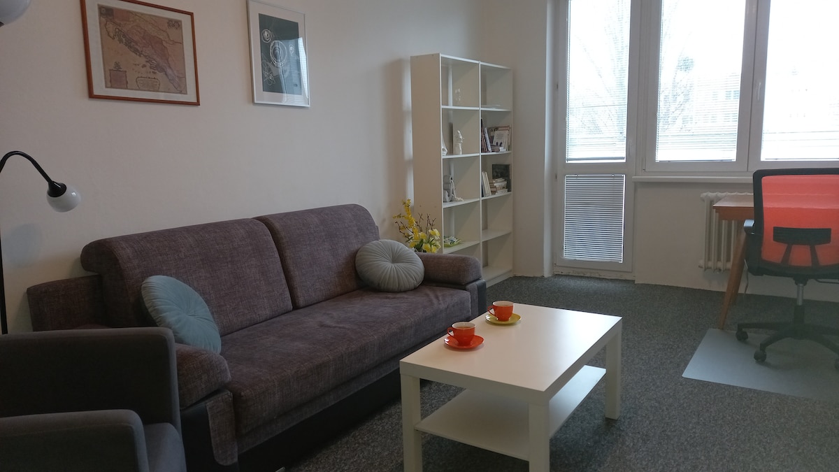 I am happy to present you my new amazing stylish studio in the highly desired city center of Ostrava. The Place is very quiet although just about 100 metres from the shopping mall Forum Nova Karolina. It fully furnished, equipped kitchen, bins, pots, cutlery, dishes. Brand new bed with incredible confort Line beds, towels,…. You can enjoy a large balcony with view in Trojhali and even Lysa Hora. I am looking forward to hosting you.