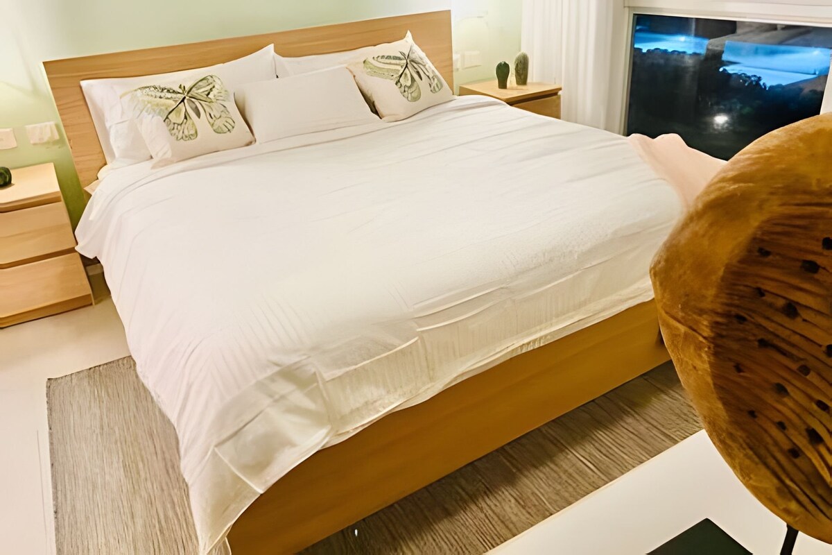 Ez a szállodai szoba 2 fő elszállásolására alkalmas. Queen méretű ággyal, felszerelt konyhával és saját fürdőszobával rendelkezik. Tartalmazza a légkondicionálást is. Az ingatlan 4 perc sétára található a strandtól. Punta Canában található, 250 méterre az Arena Gorda strandtól és 300 méterre a Bavaro strandtól. Sétatávolságra található számos étteremtől és bártól. A wifi legalább 50 Mbps sebességű. Csendesebb zsákutcában vagyunk, földúton. A szálláshelyen eltöltött időd tartalmazza az áramot, további költségek nélkül.
