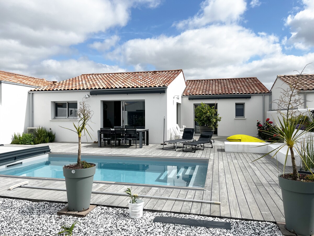 Tágas villa fűtött medencével (április-október), ideális a családdal vagy barátokkal eltöltött időhöz. Élvezd a békés környezetet, pár percre La Rochelle-től és a strandoktól. Teljesen felszerelt konyha, 3 kényelmes hálószoba, nagy, világos nappali. Falas kert terasszal és napozóágyakkal a kikapcsolódáshoz. Wifi, privát parkolás. Vízi tevékenységek és Marais Poitevin közelében. Foglalj most egy felejthetetlen kiruccanáshoz!