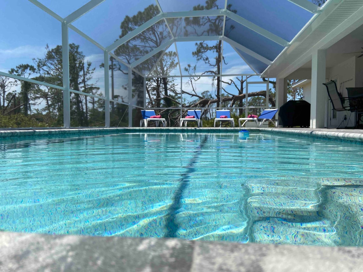 Pihentesd a lábad és a lelked, miközben kiszabadulsz a mindennapokból! Ez a luxus kis paradicsom egy csendes öbölparti vízi úton található. 10 percre Englewood Beach-től és 5 percre az üzletektől. Kötözd ki a hajódat a hátsó udvarban a magán 100 láb hosszú dokkhoz. Töltsd a napjaidat horgászással, naplementék megtekintésével vagy a medencében minden este! Könnyű hozzáférés Don Pedro Islandhez, a helyi homokpadokhoz, a torkolathoz és számos étteremhez, mindez kéznél van! Csomagolj, és dőlj hátra – a paradicsom vár rád!