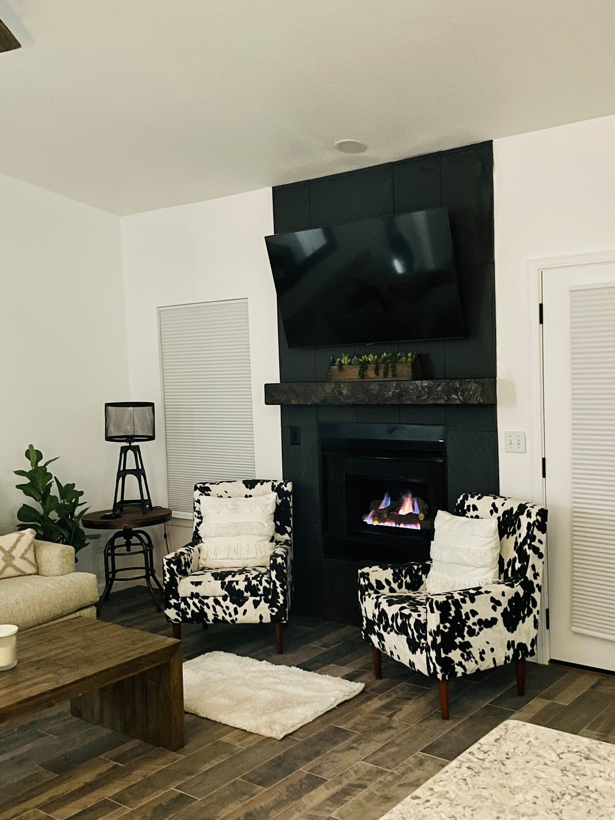 Ez a teljesen berendezett, modern otthon tökéletes hétvégi kiruccanásokhoz vagy hosszú távú foglalásokhoz. A legújabb készülékekkel és stílussal rendelkező Powder River Villa luxusérzetet kínál az otthon kényelmét. Streameld a Netflixet a halmozott kandalló előtt, lazíts a kavicsos esőzuhanyban, vagy egyszerűen csak pihenj a hátsó verandán a gyönyörű új-mexikói naplementékig. Ez a stílusos hely lehet az a romantikus menekülés, amit keresel, vagy kényelmesen elfér a 7 fős csoportodban.