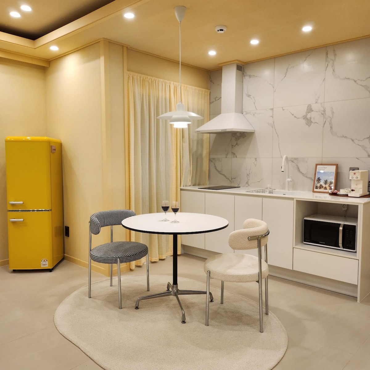 Ez egy hálás téglaház, amely kora reggel megvédte a ragyogó Yunseult a tengertől és a gyönyörű naplementét, amely esténként mindenkit megállít. Minden helyiségben érezheted a nagy ablak melegségét és hűsségét, hogy láthasd a kék tengert. A fa melegsége és a régi emlékek boldogságára emlékeztető retró hangulatnak köszönhetően szeretnék megosztani veled egy oldalt egy pihentető és élvezetes utazásról a idelátogatók számára. Házirend - Az érkezés délután 3 óra után, a távozás pedig délelőtt 11 óra előtt esedékes. - Tilos a dohányzás minden szobában és beltéri területen. - A kényelmi szolgáltatások rendelkezésre állnak. - Szobánkénti légkondicionáló áll rendelkezésre. - Kapszulakávét biztosítunk. Mindenképpen tudd meg a foglalás előtt - Főzd meg a szabadban a halat vagy húst tartalmazó égővel. - Este 10 után tiszteletben tartjuk a velünk élő szomszédokat, és korlátozzuk az ivást és az étkezést a szabadtéri teraszon. Köszönjük a megértésedet. A visszatérítési szabályokra az Airbnb visszatérítési utasításai vonatkoznak.
