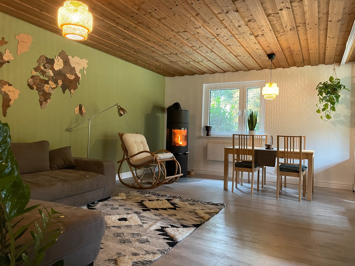 Das Haus wurde zu einem Ferienhaus und auch Seminarhaus für Yoga- und ähnliche Veranstaltungen umgebaut. Es läßt sich ruhig und beschaulich drinnen und draußen wohnen. Die ländliche Umgebung lädt ein zum Spazierengehen, Wandern, Radfahren, Ausflüge.. Seit Dezember 2022 ist es möglich, eine separates Außensauna gegen Gebühr, auf Anfrage, zu nutzen.