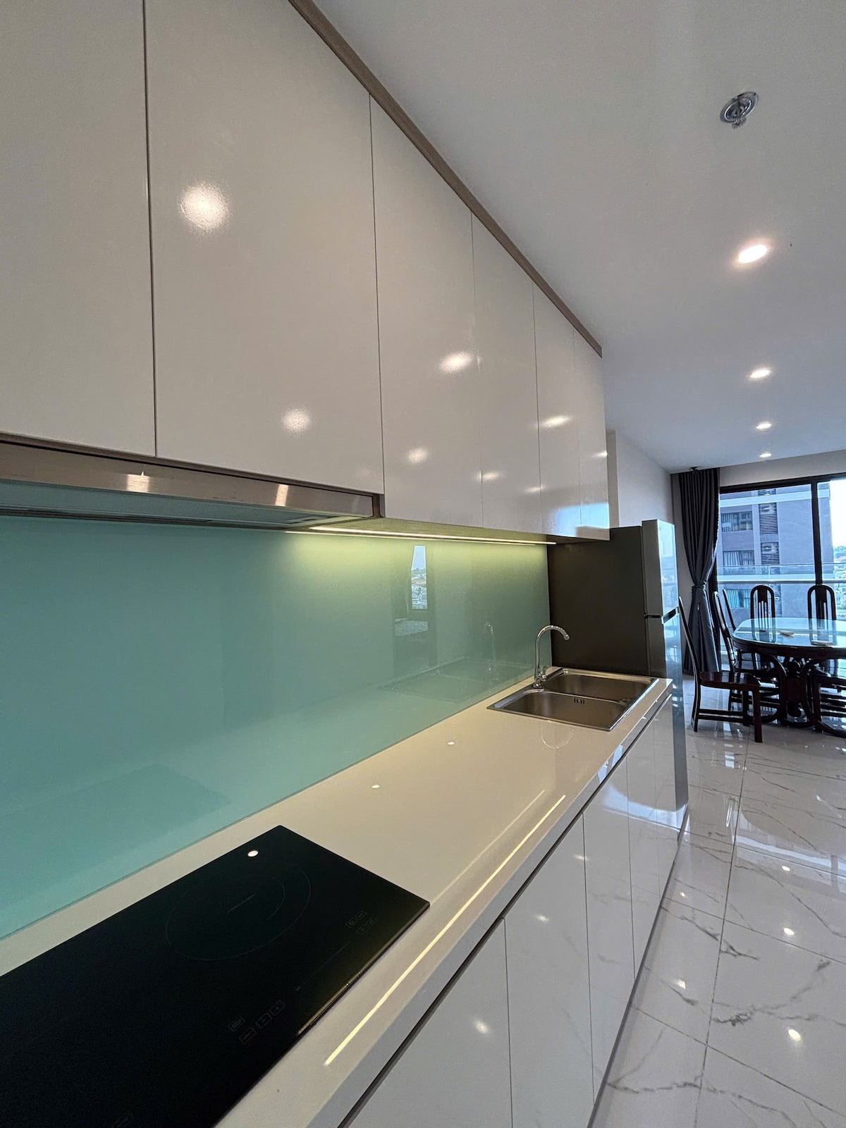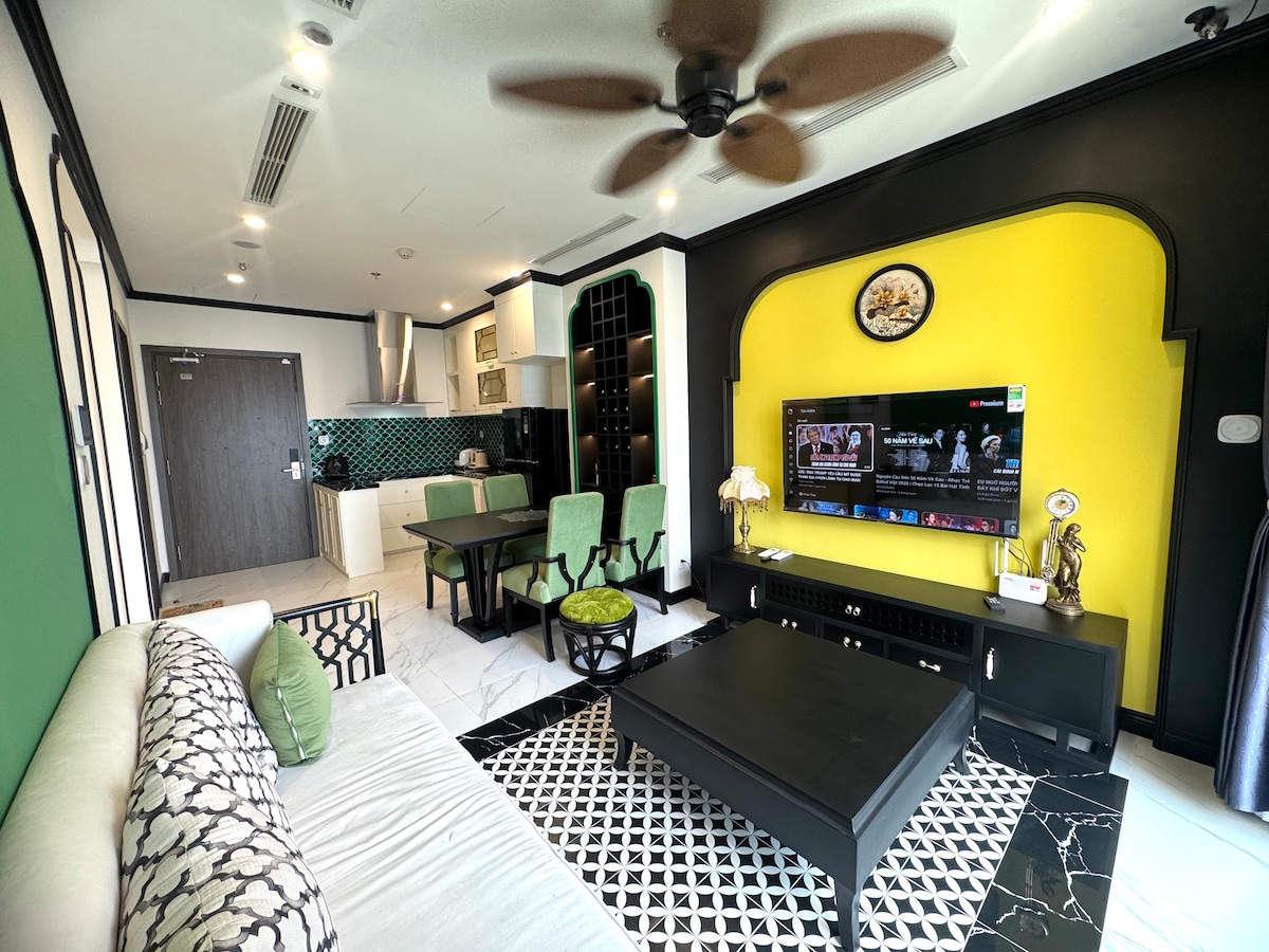 80 m²-es luxuslakás a Beverly Vinhomes Grand Parkban Tágas hely, világos nappali, kényelmes konyha, két privát hálószoba – családok vagy előkelő vendégek számára alkalmas. – Intelligens automatikus függönyrendszer – Dekoratív kandalló a tévé környékén, fényűző és hangulatos kiemelés - Hűtőszekrény, modern konyha - Mosogatógép, mikrohullámú sütő, sütő - Mosóhelyiség mosógéppel és szárítógéppel Élvezetes hely – olyan családoknak, akik szeretik a kényelmet, a magánéletet és a magas életszínvonalat.