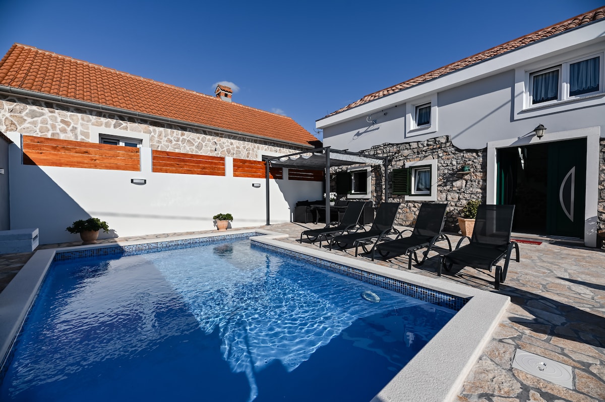 Élvezd a békét és a magánéletet a Zadar melletti Donje Biljane faluban. Ideális családoknak vagy nagyobb csoportoknak, akik pihenni szeretnének, ugyanakkor közel akarnak lenni a híres dalmát úti célokhoz. A szálláshelynek van egy privát, elkerített udvara. A vendégek egy nagy szabadtéri teraszt is használhatnak, amely tökéletes a társasági élethez, étkezéshez és esti pihenéshez. Különös hangsúlyt fektetünk a privát medencére, hogy felfrissülhess a nyári napokon.
