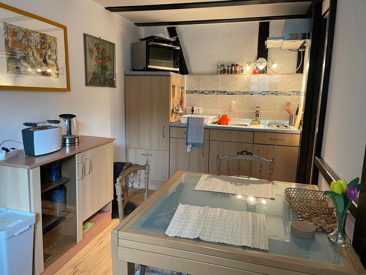 „Apró házikó” Bad Bergzabern belvárosában. A házikó egy magas, világos, nyitott térből áll, galériával. A földszinten van a nappali, a kis funkcionális fürdőszoba zuhanyzóval és egy nyitott konyha, az emeleten vannak az ágyak. A nagy étkezőasztalnál vagy a két hangulatos karosszékben, amelyek lábzsámollyal rendelkeznek, kényelmesen elhelyezkedhetsz. A házikó ideális elegáns „alaptábor” a természetélményekhez a Pfalzi erdőben, a közeli Elzászba, a szőlőhegyekre tett kirándulásokhoz és még sok minden máshoz.