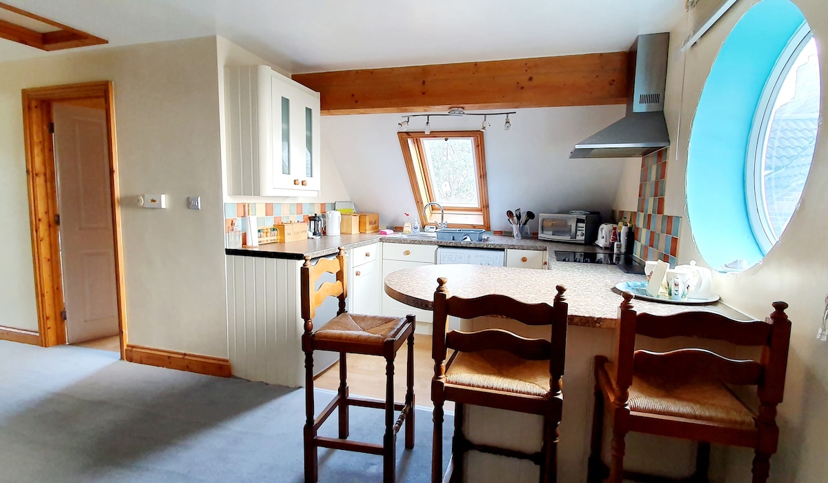 Egy korhű ház tetején egy teljesen felújított lakás található, amely kiváló kilátást nyújt a környező területre, teljesen új bútorokkal és szerelvényekkel. A hely A tetőtér egy nappaliból, konyhából, hálószobából és fürdőszobából áll. Mit használhatnak a vendégek? A vendégek a főépület bejárati ajtaján lépnek be, és 2 lépcsősort kell megmászniuk a saját emeletükre. Egyéb fontos dolgok Két macskánk van. A ház elején is van egy társalgóhely, amely elkapja a délutáni napot.