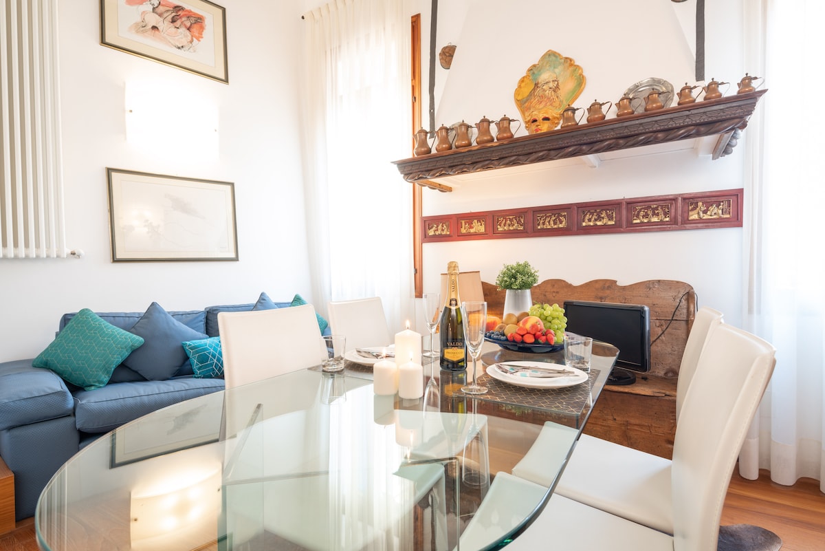 Elegáns és modern lakás Velence történelmi központjában, Sestiere San Polóban, egy kőhajításnyira a Basilica dei Frari bazilikától, Velence egyik legjellegzetesebb területétől, amely tele van „bacarival” és helyekkel. Közvetlenül egy fontos csatornán néz ki, amely lehetővé teszi a vendégeknek, hogy közvetlenül taxival érkezzenek. Nagyszerű lehetőség, hogy valódi velenceiekkel ismerd meg a hagyományos Velencét.