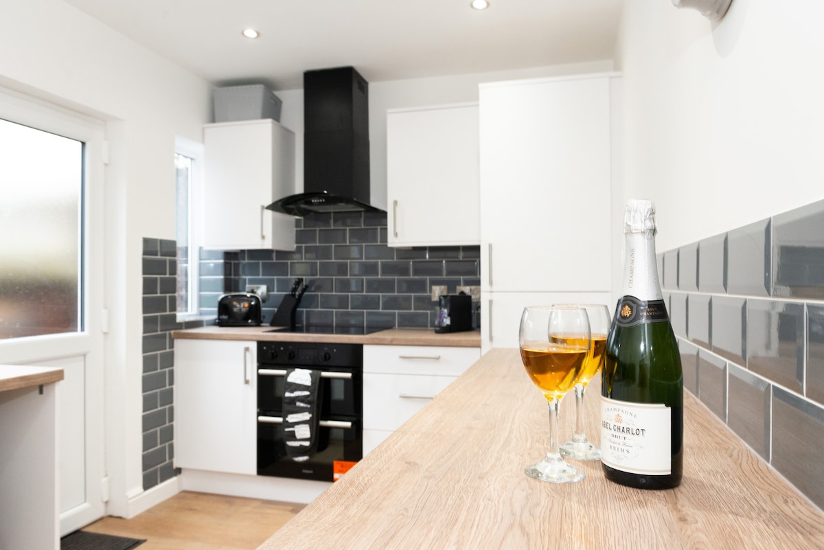 Első emelet, egy hálószobás lakás . Saját bejárat, utcai parkoló. (URL REJTETT) Társalgó TV-vel , freeview, dvd , wifi. Összecsukható asztal 2 székkel, kanapéval, székkel . Konyhasarok mikrohullámú sütővel, vízforralóval,kenyérpirítóval ,hűtőszekrénnyel stb., edényekkel felszerelve. Tej, tea és kávé, az első éjszakára biztosított.A hálószobában franciaágy, szekrény, fiókos szekrény található. Zuhanyzó borotválkozási ponttal, hajszárítóval. Ez egy szép kompakt, nemrég felújított lakás. Lépcsőn keresztül lehet bejutni.