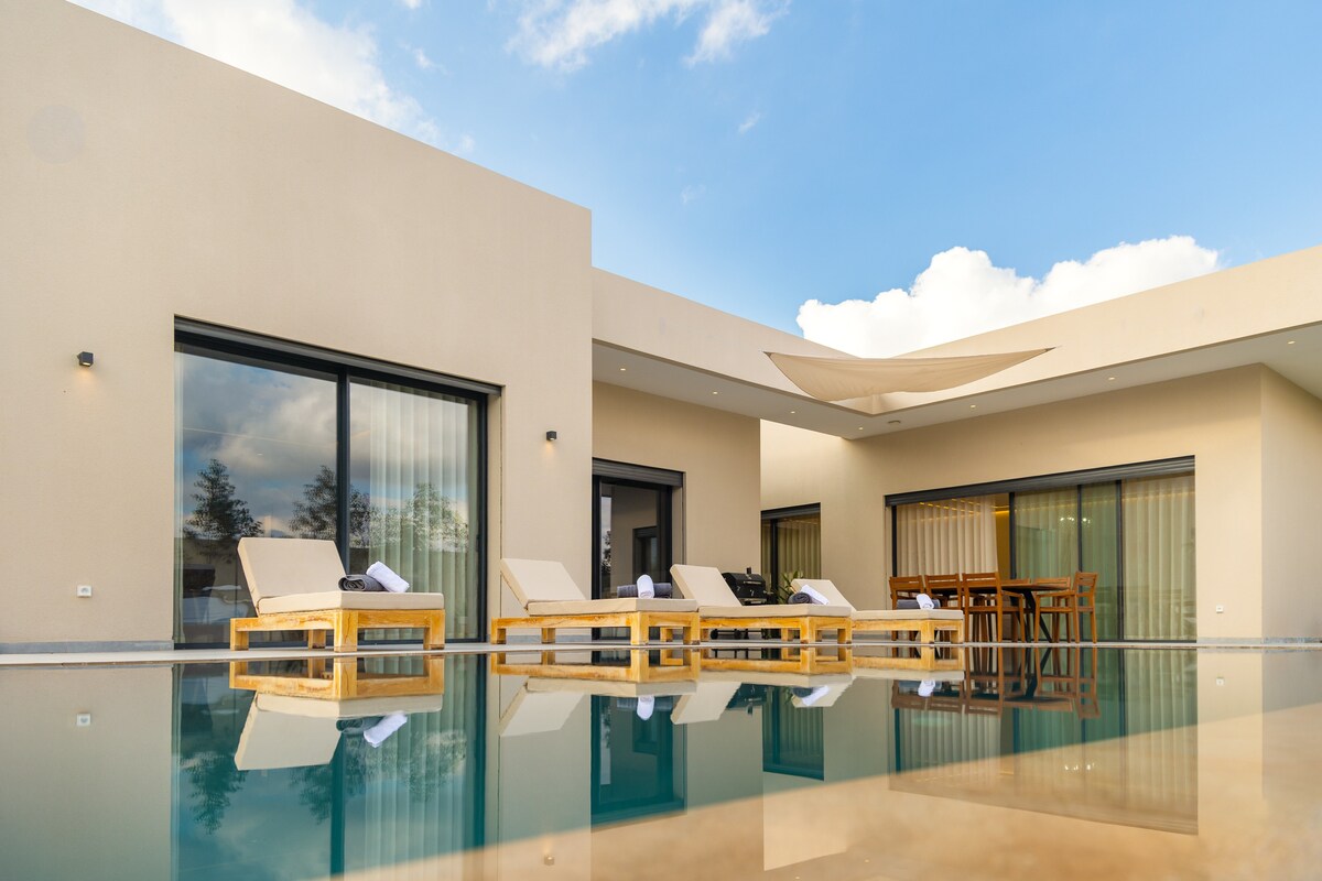 Villa luxe 4 suites, piscine chauffée, vue Atlas.
