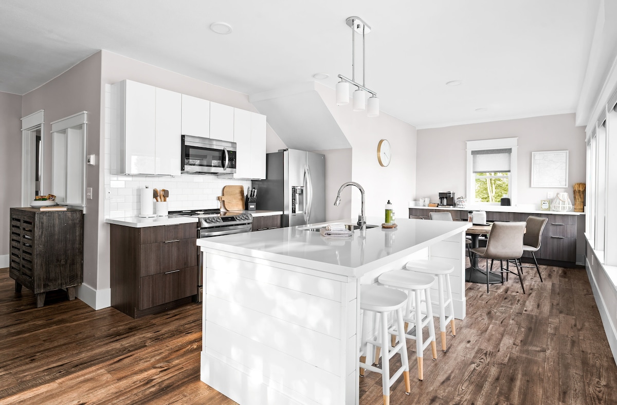 Üdv a Bayview Cottage-ban, egy 5 csillagos, egész évben nyitva tartó tóparti szálláshelyen Duluth ikonikus Park Pointján. A Superior-öböllel a hátsó udvarban (privát dokk) és a Superior-tó homokos strandjával az utca túloldalán, ez a hangulatos, mégis tágas otthon ritka kettős vízparti élményt kínál – tökéletes családoknak, pároknak és békés csoportos kiruccanásokhoz. ☀️ NYÁR A BAYVIEW COTTAGE-BAN A vendégek imádják itt a nyarat, mert egy foglalás során két vízparti élményt is élhetnek át: 🏖 Strand az út túloldalán úszáshoz és napozáshoz 🚣 Privát
