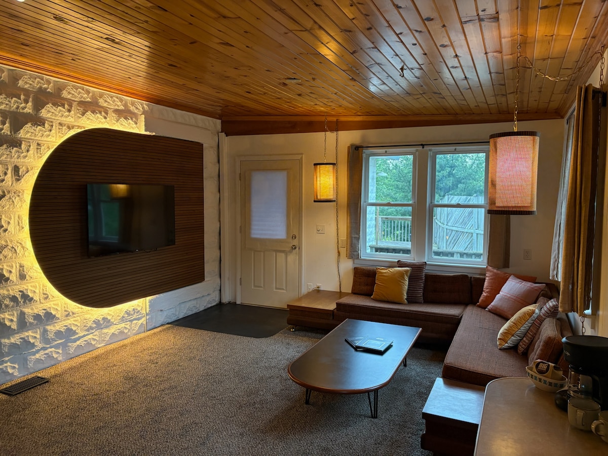 7 perc autóval a Mount Baldhead Parkig 9 perc autóval Oval Beach-ig 12 perc séta a Butler Streetig Egy békés erdős területen fekszik, és sosem gondolnád, hogy ez a gyönyörű rönkház Saugatuck szívében található. Ez a gyönyörűen berendezett és növényekkel körülvett hangulatos víkendház tökéletes kiruccanás pároknak. Sétálj egyet a belvárosban, csodáld meg a hajókat a dokkból, és fedezz fel más közeli látványosságokat, például az Oval Beach-et és a különböző túraútvonalakat! Ismerd meg velünk a Saugatuckot, és tudj meg többet alább!