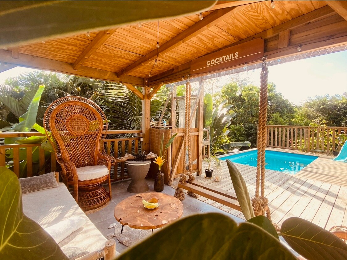 Ha pihenni szeretnél, a legfeljebb 4 fős szálláshelyed egy hálószobával és kanapéággyal rendelkezik. Víztartalékkal felszerelve, 6000 liter. Ideális helyen, Sainte-Anne és Saint-François között, üzletek és éttermek közelében, egy kőhajításnyira a Helleux strandtól (szörfös strand) és 1 kilométerre a Bois Jolan strandtól. Minden bérlőnek van medencéje egy trópusi kertben. Este 6 órától bárhangulat .....
