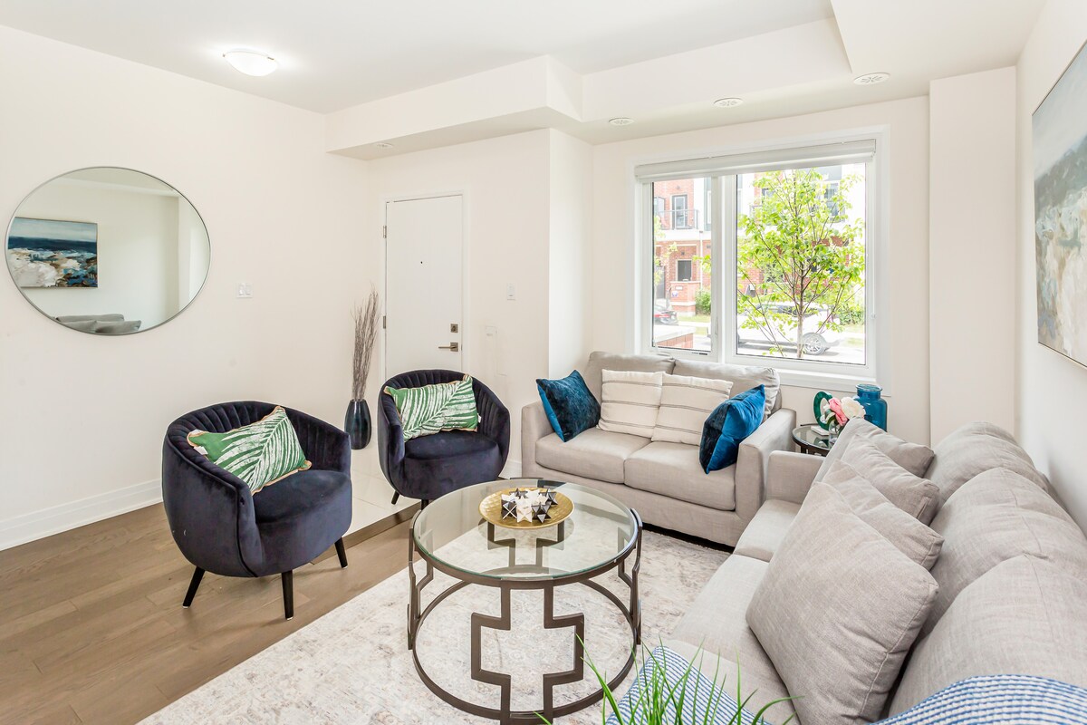 Experience endless family fun at our stylish home. 5 bedrooms and 3.5 bath, high-end mattresses, fully equipped kitchen, BBQ grill, office, dart board, games and so much more. Rest easy knowing our property is professionally cleaned between guests. Conveniently located near airport, Yorkdale Mall, subway, GO train, bars, restaurants, grocery stores, cafes... On a quiet residential street, you'll have everything you need just steps away. Choose our exquisite retreat for a memorable getaway!