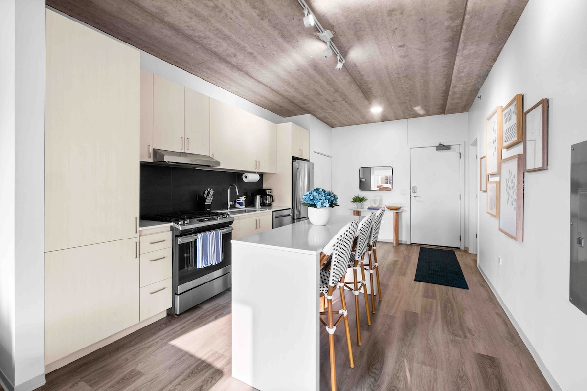 A városi elegancia találkozik az elsőrangú elhelyezkedéssel! Üdvözlünk a Chicago Loop szívében található sikkes, kemény loftlakásunkban. Tapasztald meg a városi életet a legjobb formájában, ahol az ipari báj a modern luxust ötvözi. Jellemzők: - Autentikus loftlakás csiszolt betonpadlóval - Magas mennyezetek - Elegánsan berendezett Helyszín: - Közvetlenül Chicago nyüzsgő Loop negyedében - Sétálj el a Millennium Parkba, a Chicagói Művészeti Intézetbe, a Mag Mile-ba, a Riverwalkba és még sok más helyre