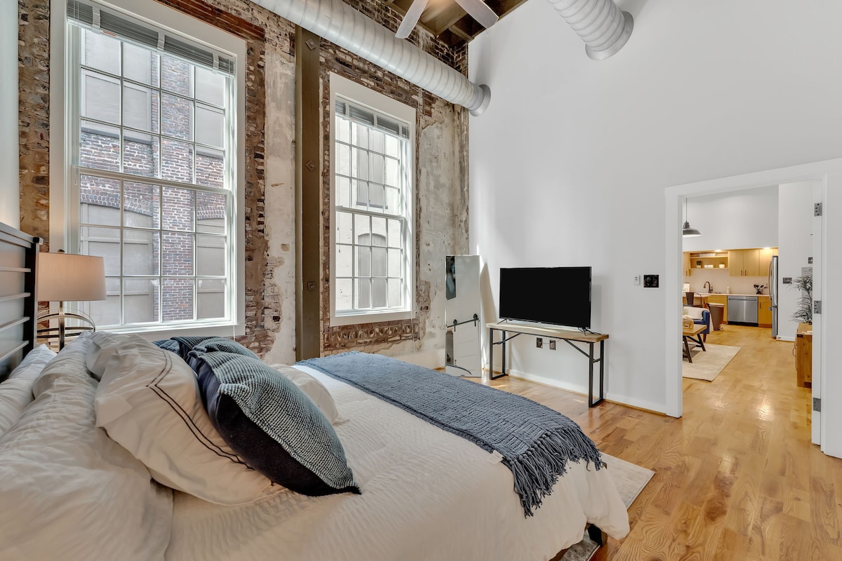 Üdvözöllek a stílusos ipari szálláshelyeden Knoxville belvárosának szívében! Ez a lenyűgöző társasházi lakás tökéletes kiindulópont a városi kalandodhoz, és ötvözi a modern dizájnt a hangulatos, hívogató légkörrel. Lépj be, és tapasztald meg a nyitott elrendezésű lakótér előnyeit, amelyet nyers téglafalak, polírozott betonpadló és magas mennyezet jellemez. A gondosan összeválogatott dekoráció, a bútorok és a két részből álló, masszázsfunkciós king méretű ágy ideálissá teszik ezt a helyet a pihenésre, miután egy napig felfedezted, amit Knoxville kínál.