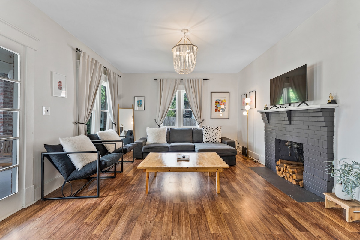 Ez az átgondoltan felújított, 1920-as években épült otthon sikkes beltérrel rendelkezik, amelyet vakolatlan téglafalak és élénk színek emeltek fel. Játssz shuffleboardot a játékteremben, gyújts be egy grillt a tágas fedélzeten, pihenj az újonnan telepített pezsgőfürdőben, és élvezd a beszélgetéseket a hátsó udvarban lévő tűzrakóhely körül, miközben a szőrös babáid körülötted játszanak. Engedély # 2/0/1/9/0/0/7/9/8/8