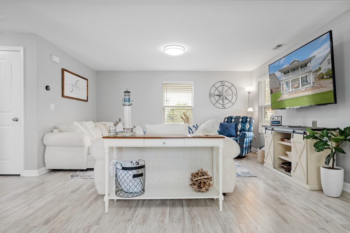 The kid and pet friendly retreat your family will love! This beautiful 2,200 sqft, four bedroom home is PERFECT for your beach get away and is less than a 5-minute walk from the beach. This home features a stylish design, a dining room table that can seat up to 10, a fenced in back yard for your furry friends. There are two decks with outdoor seating, modern washer and dryer, games and toys, and much much more. Can't wait to host you!!