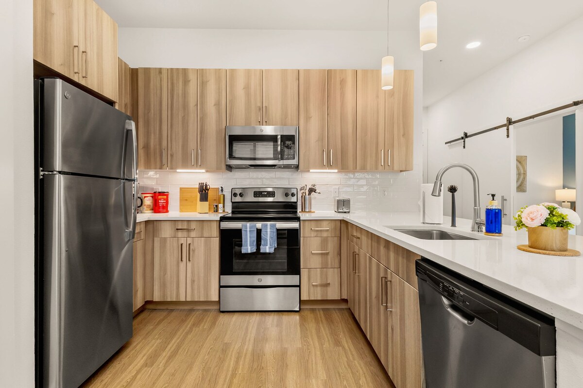 You can stop your search now. You just found the perfect place to book for your trip to San Antonio. ➹ Clean. Robust Amenities. Modern Finishes. Quick Host Responses. ➹ You're going to be located at the CENTER of everything in Downtown San Antonio. ➹ Get a good night's sleep with our memory foam beds. ➹ Spend your daytime working from home at our private home office. Cook a meal for your group in our beautiful, timeless kitchen. Then spend your evenings relaxing with our 65" Smart TV.