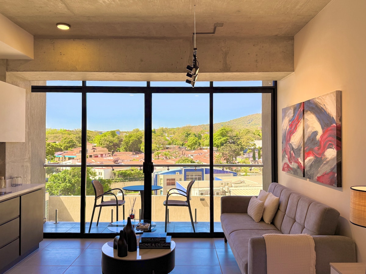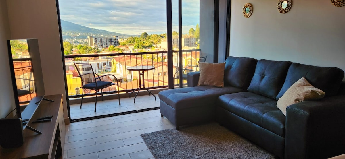 Apartamento nuevo, totalmente equipado y amueblado con una sola cama matrimonial, con decoración moderna pensado en garantizarte una cómoda y agradable estadía. Ideal para relajarte, disfruta de tu café por la mañana en la terraza con una gran vista a la ciudad o disfruta una copa de vino en la noche con la excelente vista a San Salvador. En una zona céntrica, estratégica y segura, cerca de supermercados, centros comerciales. A solo 40 minutos del Aeropuerto,