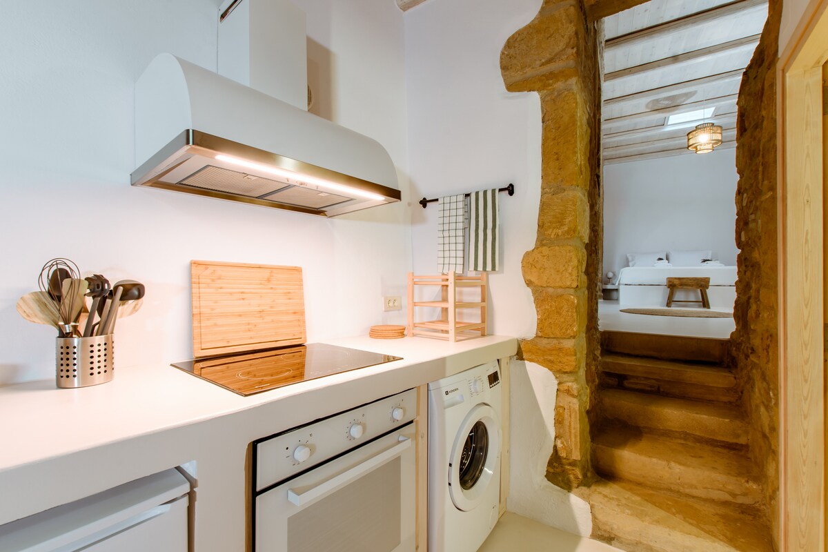 19th century ottoman house, fully restored in a peaceful little village near Kissamos (Kasteli). Relaxing and minimal with boho vibes, ready to host stylish couples, friends, lonely travelers, or even small and flexible families (sofas can be used as small beds for children). Open mountain view from the rummy balcony. A private front yard with shadow ready to host your breakfast or a dinner under a starry sky in full privacy.
