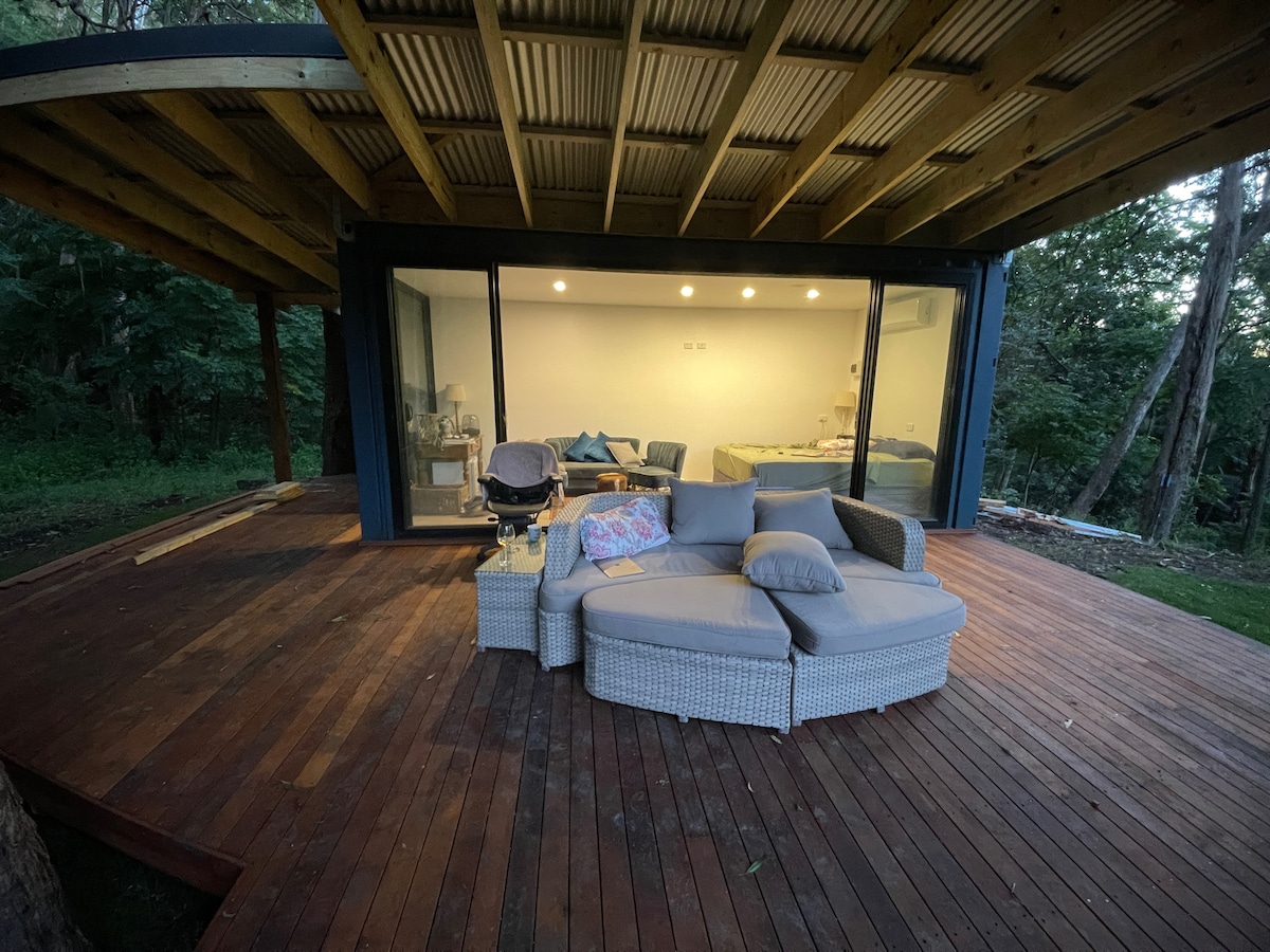 Ez az egyedi építésű pajta az Aranypart hátországában található, sétatávolságra a nemzeti parkoktól. Az újrahasznosított rakparti fából készült pajta egy 18 hektáros farmon található, amelyet zöld gyep szegélyez. A tetőtéri hálószobában egy king méretű ágy és saját fürdőszoba, külön zuhanyzó és kád található. A földszinten található egy második fürdőszoba / mosókonyha, tűzhely, társalgó, dolgozószoba és felfújható ágy (a felfújható ágynemű nem tartozék), étkező és teljesen felszerelt konyha, mielőtt egy nagy teraszra lépnél, amely az esőerdőre néz.