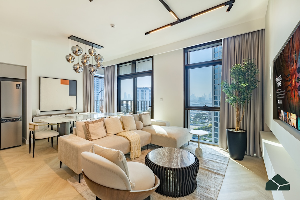 Luxus 2 hálószobás medence melletti menedék a Dubai Creek Harbourban