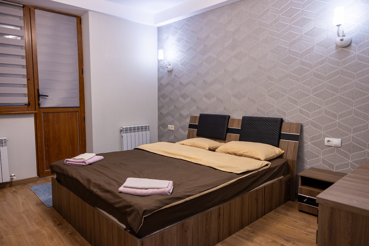 Lakásaink 5 percre vannak a Chisinau repülőtértől. Nagy, 70 négyzetméteres lakást kínálunk stílusos kivitelben: – Első hálószoba nagy king méretű ággyal – zise. – A második hálószoba egy összecsukható kanapéval 150 cm széles, és saját fürdőszobával rendelkezik – Egyéb fürdőszoba – Egy előszoba konyhával, egy nagy, összecsukható kanapéval. - Ingyenes parkolás. - Nagy erkély A lakásban minden megtalálható, amire szükséged lehet: Ágynemű, edények, kávéfőző, mosógép, Wi-Fi, nagy TV Alig várom, hogy vendégül láthassalak!💕⚜️