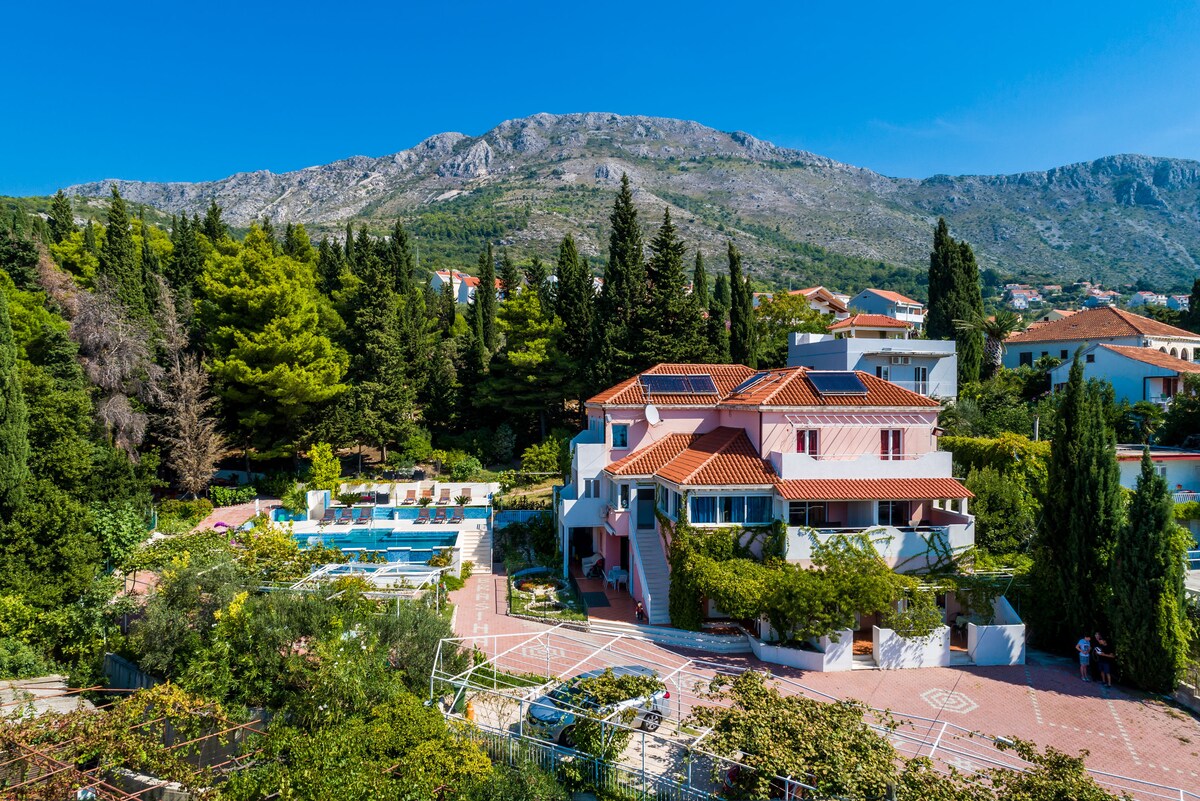 Ez az egyedülálló szálláshely két apartmanból áll, gyönyörű kilátással a tengerre és az Elafite-szigetekre, garantált magánszférával és kényelemmel. Az apartmanok nemrég felújításra kerültek, és egy buszpályaudvar közelében helyezkednek el, ahonnan a városi busz 15 perc alatt eljuttatja Önt az Óvárosba és a strandhoz.