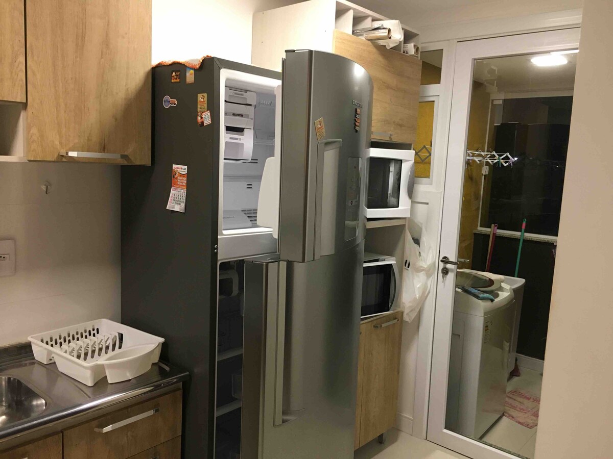 Complete apartment in the city center, close to markets, cinema, restaurants and shops. Less than 5 minutes from the sea! 😃 The apartment has a bedroom, living room, bathroom and kitchen/utility area, fully furnished and ready for use. In the living room, the apartment has a double-size sofa bed. Sea views from both the apartment and the terrace, which has a swimming pool, gym and leisure area. Also includes TV with Netflix and other streaming services (not included), barbecue and garage