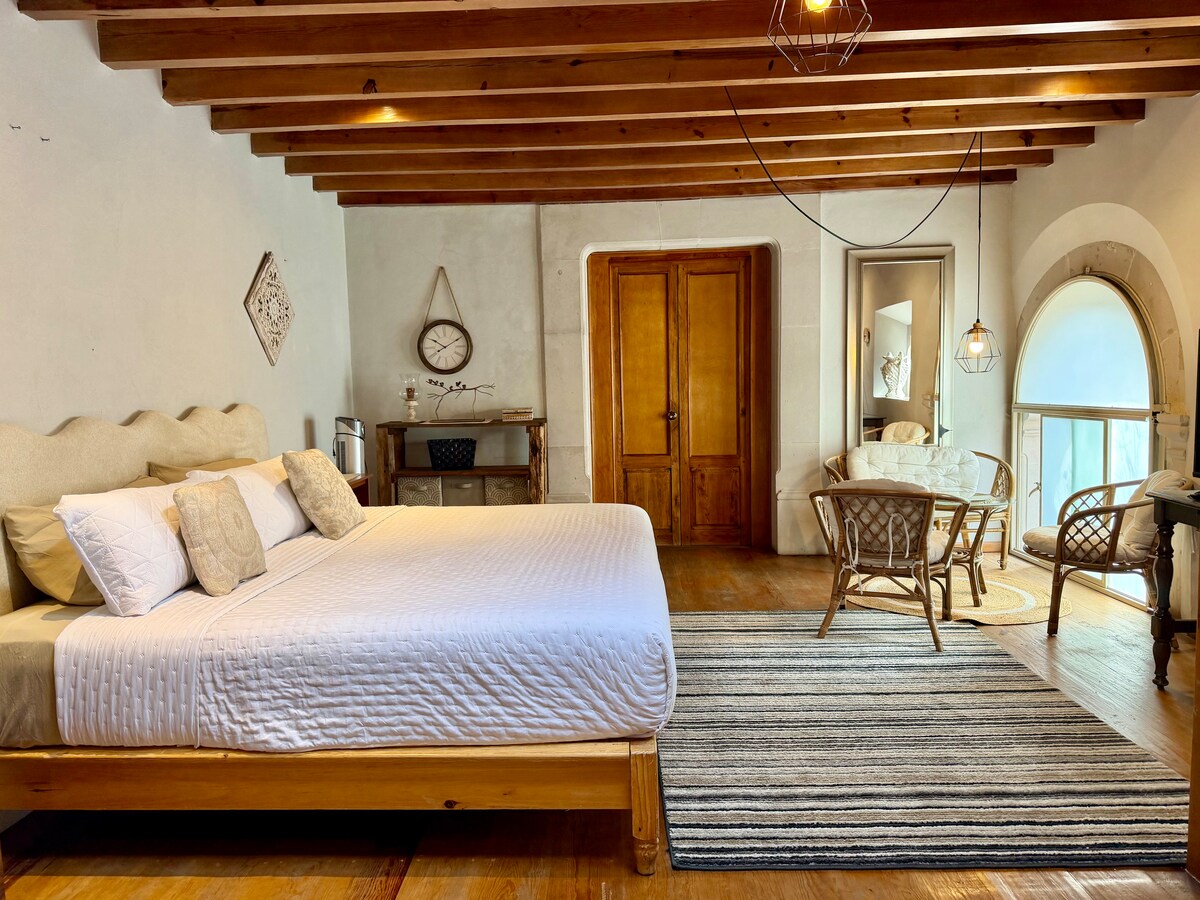 Enjoy a modern and cozy mini-loft located right next to the iconic Santa Ana Church, in the heart of Durango’s Historic Center. Perfect for couples, business travelers, or anyone looking for a stylish, comfortable, and safe stay in the best area of the city. You’ll be able to relax from the moment you arrive, with restaurants, cafés, shops, museums, and the main attractions just steps away.