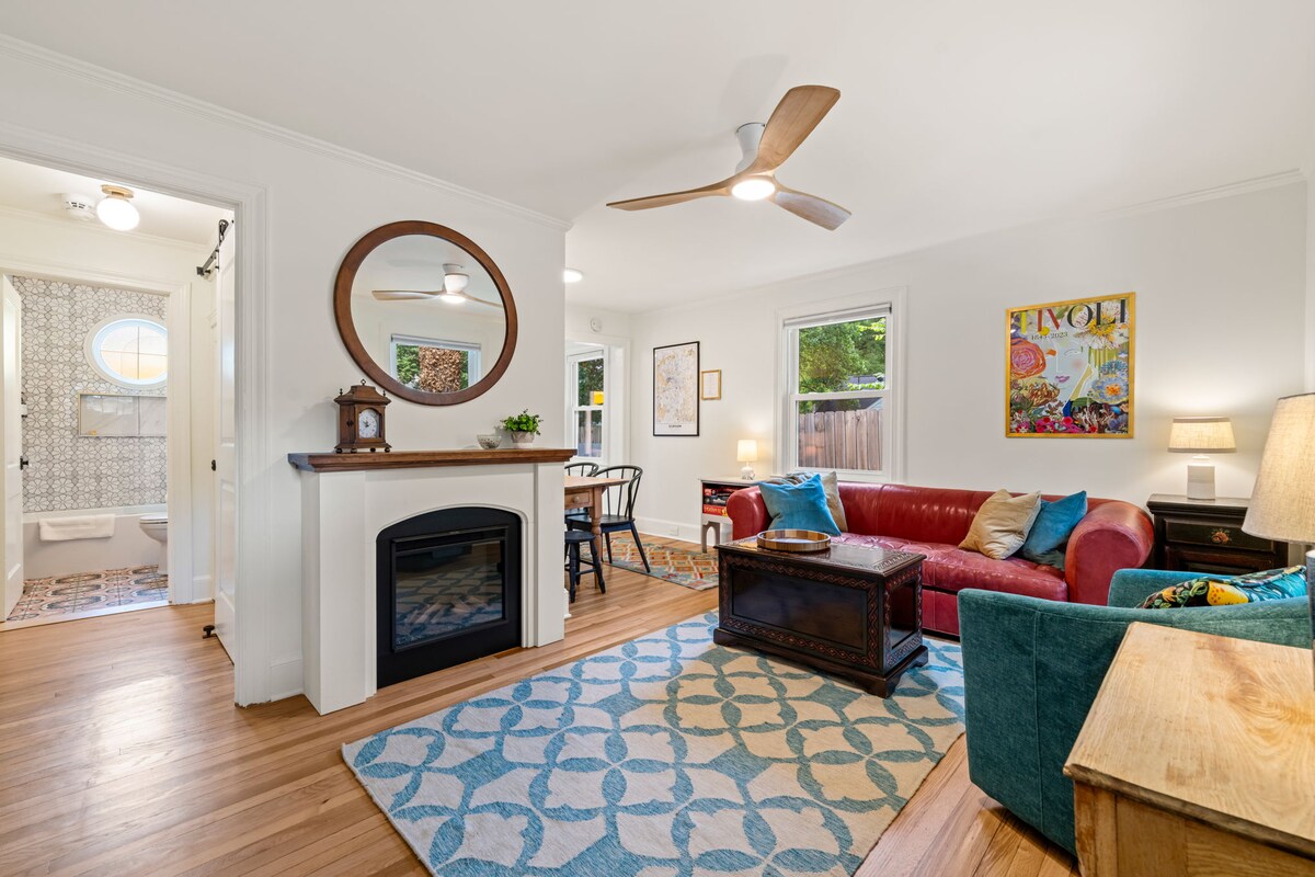 Szállj meg modern, vintage vendégházunkban a Historic Trinity Parkban. A kisházunkban minden modern készülék megtalálható vintage berendezési tárgyakkal. Házunk egy hangulatos, lakott nyaraló rusztikus bájjal. Ez a 380 négyzetméteres házikó egy nagyon nyüzsgő és biztonságos környéken található, mindössze pár percre Durham belvárosától. Sétálj egy mérföldet az Ellerbe Creek ösvényen a belvárosig! Séta 1,5 mérföldre a 9. utcai éttermektől és üzletektől 1 mérföldre a Central Parktól és a termelői piactól <1 mérföldre bároktól és éttermektől a Geer Streeten