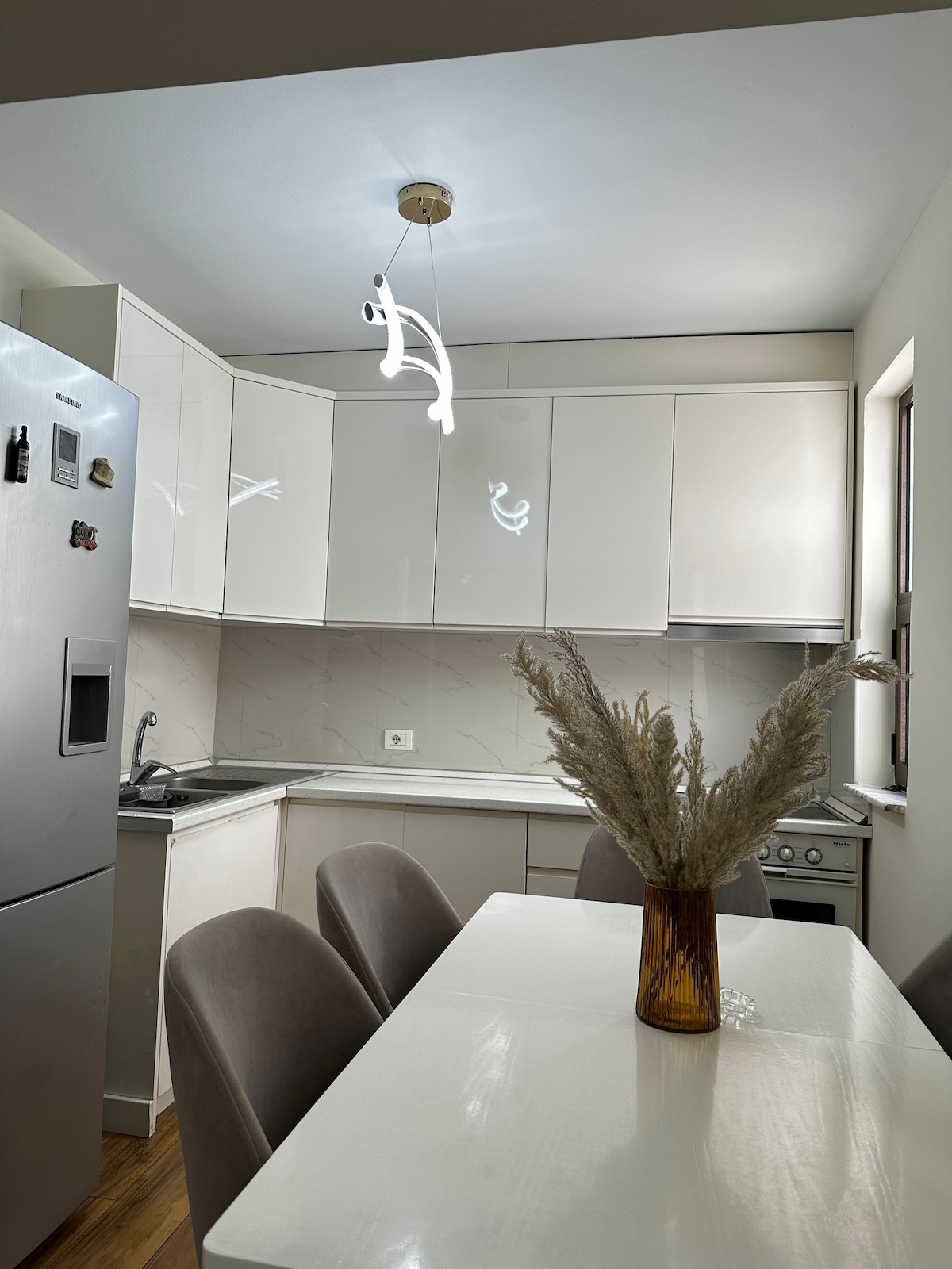 Luxuslakás az Új Bazár közelében – Tirana Szállj meg stílusosan ebben az elegáns lakásban, csak pár lépésre az Új Bazártól. Élvezd a modern dizájnt, a világos nappalit, a king méretű ágyat, a teljesen felszerelt konyhát és a saját erkélyt. Ingyenes parkolást, nagy sebességű Wi-Fi-t, okostévét és légkondicionálást biztosítunk. Tökéletes elhelyezkedés – sétálj el a kávézókba, éttermekbe és Tirana nyüzsgő központjába.