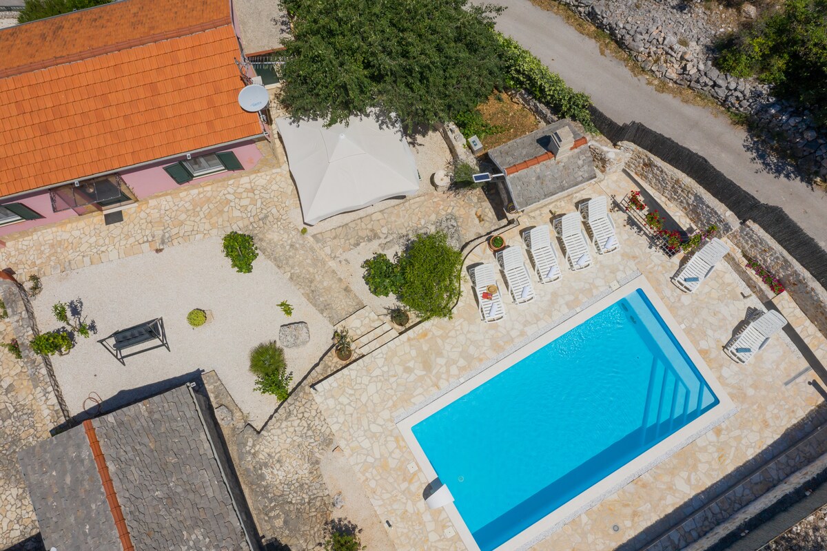 Ez a ház található a kis tengerparti hely Kanica, közvetlenül a tenger és a kis strand. A ház körül gyönyörű kert, medence és terasz és erkély élvezheti a csodálatos kilátás nyílik a tengerre és a környékre. A ház fel van szerelve annak érdekében, hogy megfeleljen minden igénynek a tökéletes nyaralás pihentető környezetben. Mindkét emelet légkondicionált, és az egész házban ingyenes Wi-Fi internet-hozzáférés biztosított. Mindent egybevetve, a ház mindent biztosít a pihentető nyaraláshoz.