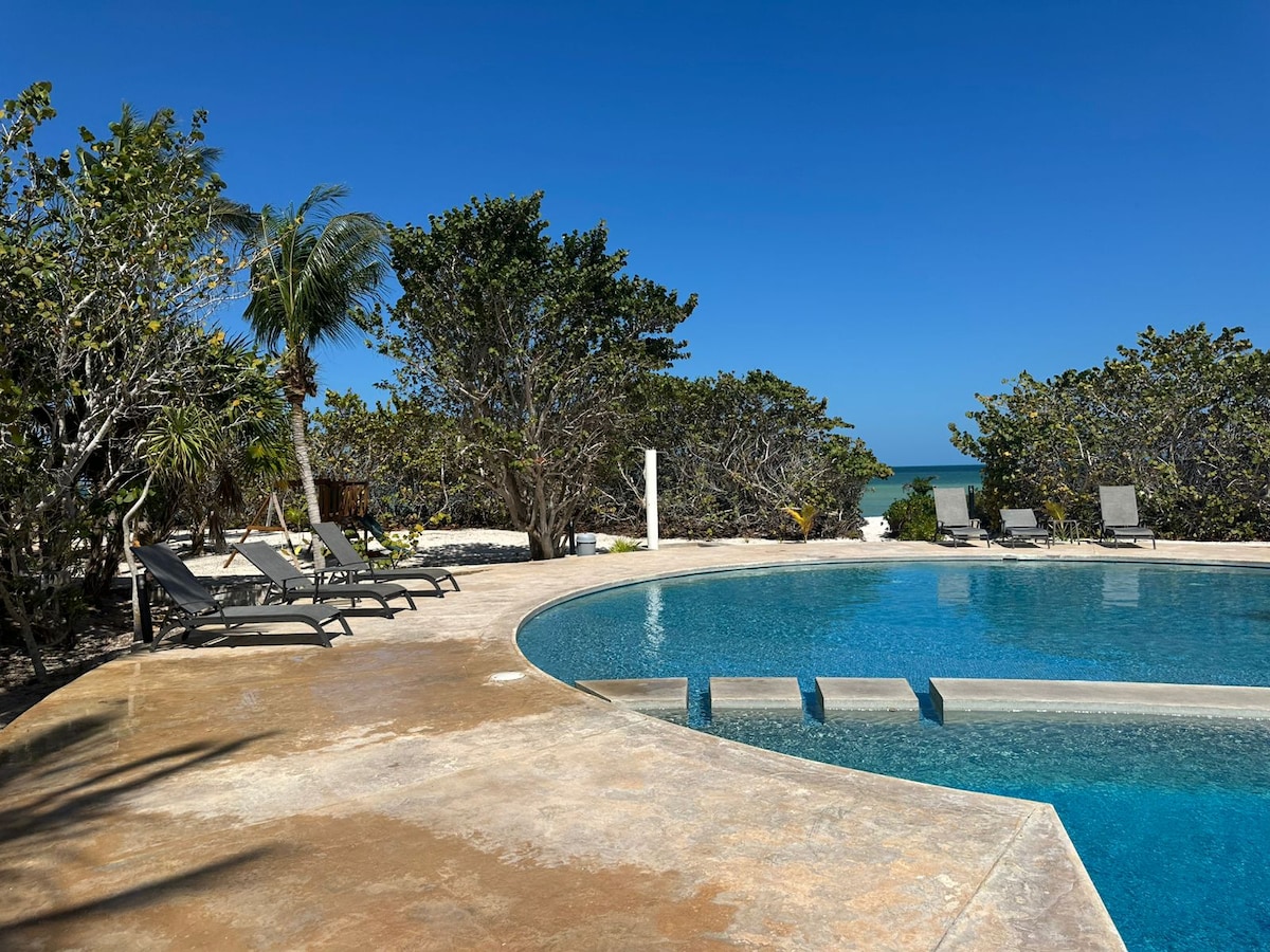 Beachfront 4BDR w/Starlink & Pool SanBruno Yucatan