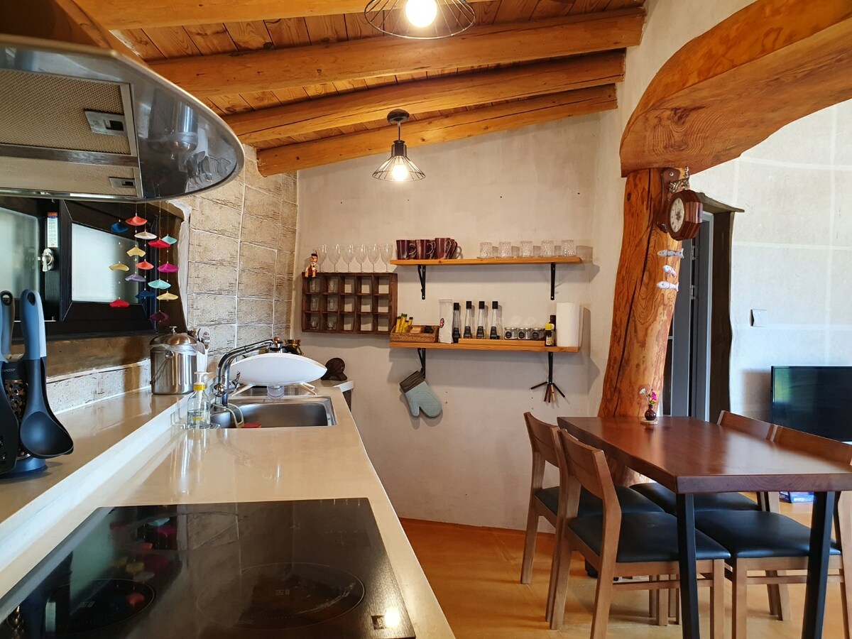 Gyógyító szállás a pihentető pihenéshez/2 tömörfa ágy (1 dupla, 1 egyszemélyes), saját fürdőszoba és konyha