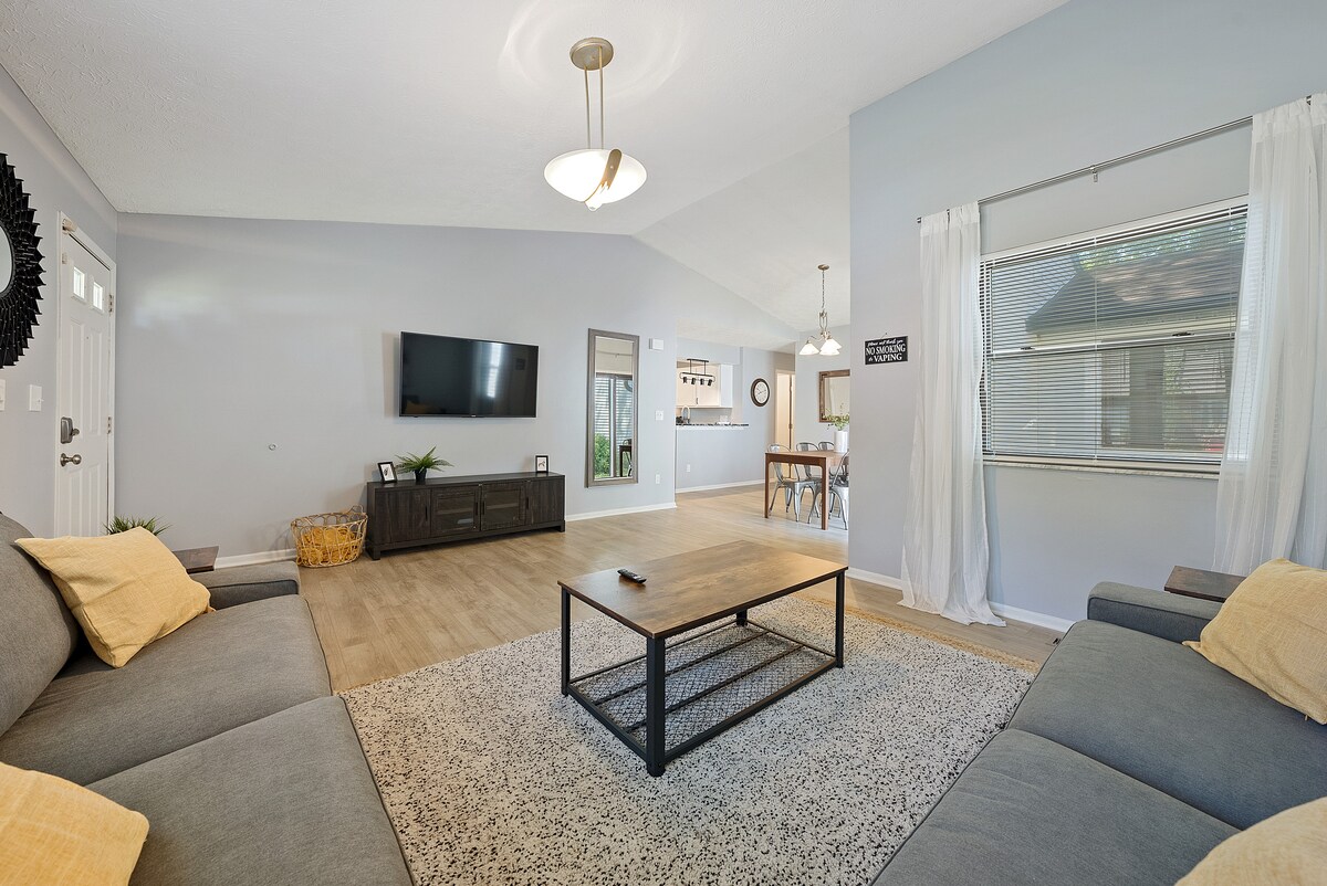 KÖTELES FIGYELEMBE VENNI. Ez a tiszta, stílusos és tágas, 3 hálószobás, 2,5 fürdőszobás otthon hatalmas udvarral és garázsparkolóval ideális üzleti utazók, családok, csoportok és egyéni felfedezők számára egyaránt. A szálláshely egy békés környéken található, mégis csak pár percre Columbus belvárosától, Eastontól, a CMH repülőtértől, Bexley-től és Pickeringtontól, így mindezt élvezheted. Kérjük, vedd figyelembe: 🚫 NINCSENEK BULIK 🚭 TILOS BELTÉREN DOHÁNYOZNI Külső biztonsági kameráink vannak, amelyek a kocsifelhajtóra, az utcára és a hátsó udvarra néznek.