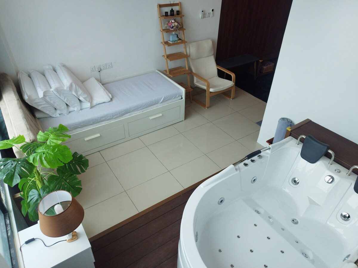 Stunning Sea view from the house. Chilling at the balcony. Swimming pool@level 6 Living Room, Queen Size bedroom, private sofa bed corner with curtains. Ensuite bathroom with hot and cold water shower. Large refrigerator with ice cube , mini kitchen with electric cooker, pot,plate,spoon,fork are available . Light cook at the kitchen. Filter water machine hot and warm. Please select 3 guest if you need single bed setting convert from sofa bed.
