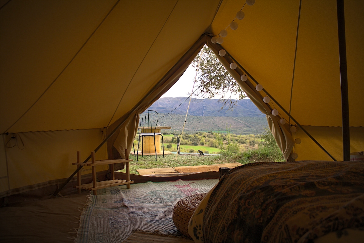 Harangsátor 2 fő részére, tágas helyen, szabad kilátással, a melléképület közelében. 2 ágy 190x90-es habszivacs matraccal, puffok, 2 szék, asztal, áram, hűtőszekrény és kis lámpák. A természetben, de mégis csak 10 perc sétára a hangulatos Horta de Sant Joan falutól. Az autómentes Via Verde gyalogos és kerékpáros útvonalon és az Els Ports természetvédelmi parkban. Teraszos kempingező, így szabad kilátás. Csak 14+. Meleg víz, könyvek, játékok, úszómedence, petanca, terasz, BBQ, szabadtéri konyha és Wifi ingyenes használata.