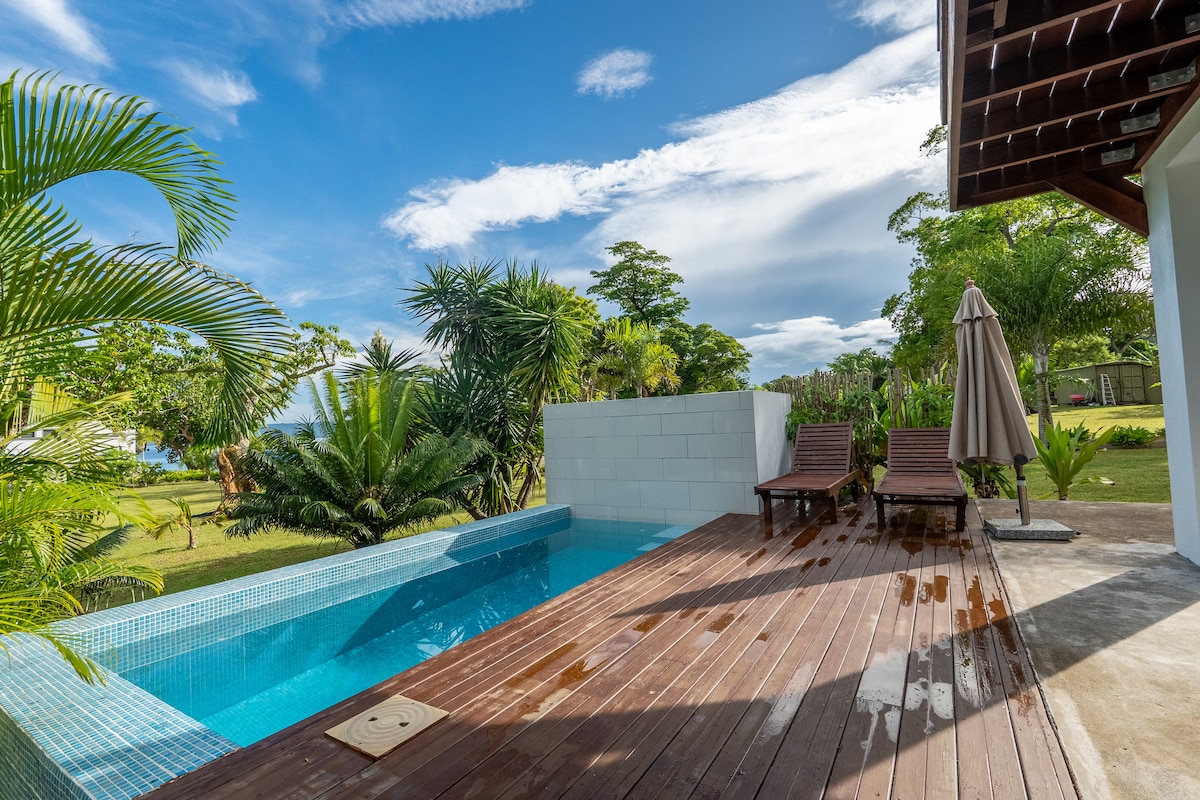 Ez a trópusi tervezésű villád egy védett South Pacific Island strandon, amely 30 perces autóútra van a nemzetközi repülőtértől, és sétatávolságra számos más óceáni öbölhöz és strandtól. A villa gyönyörű nyers fákkal, mészmosott falakkal, helyi művészetekkel, kézzel készített és antik bútorokkal, teljesen nyitott konyhával és étkezővel, széles függőágy-barát padlóval rendelkezik, ahonnan keretes kilátás nyílik a Csendes-óceánra, beltéri és kültéri zuhanyzók, valamint buja kertek.